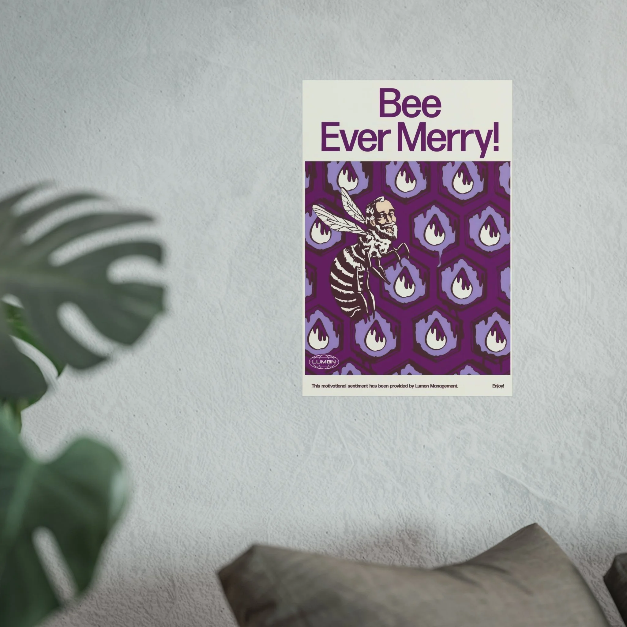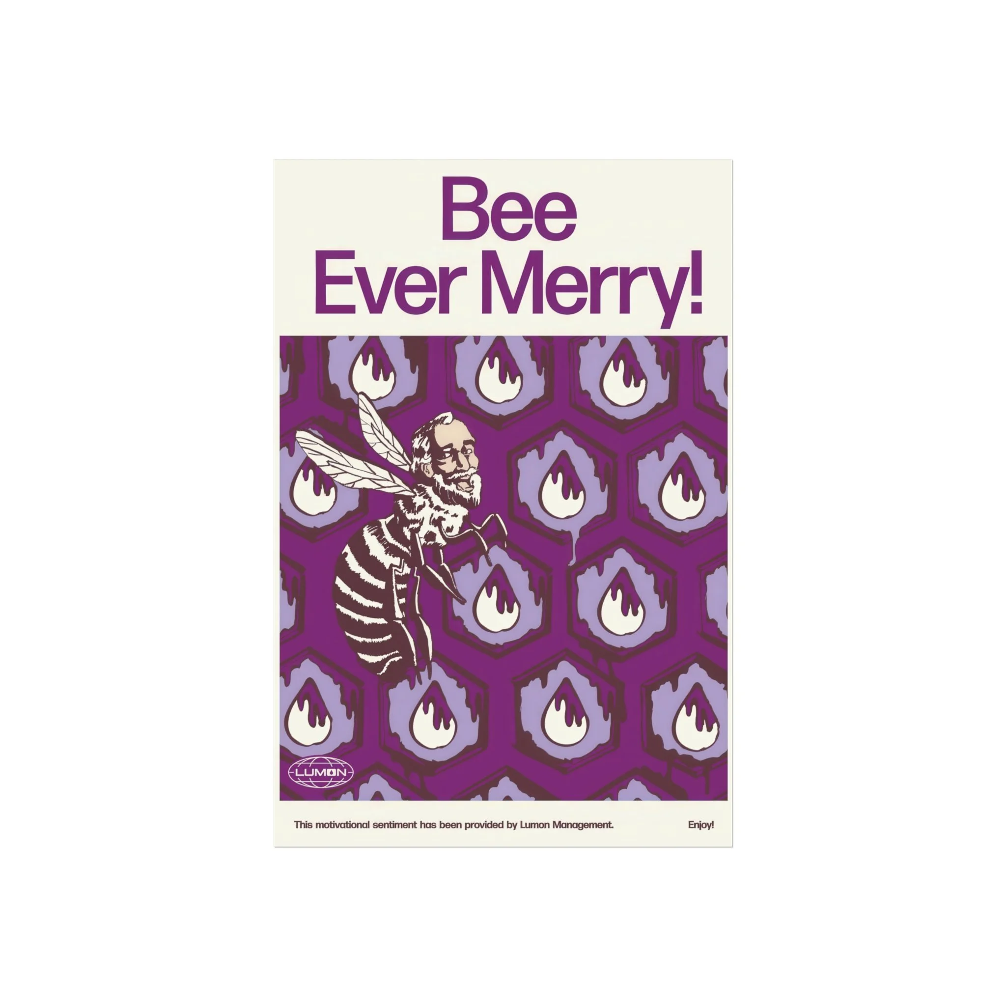 Transform your space with this Severance Inspired "Bee Ever Merry!" Fine Art Poster that offers a unique blend of artistry and motivation. Featuring a smooth matte finish, the poster radiates a contemporary vibe that enhances any décor. Perfect for home offices, living rooms, or creative spaces, they inspire positivity and perseverance. This print will appeal to art lovers, motivational enthusiasts, and anyone looking to uplift their environment. Ideal for gifting during holidays, birthdays, or housewarming celebrations, they create a lasting impression well-suited for various occasions.